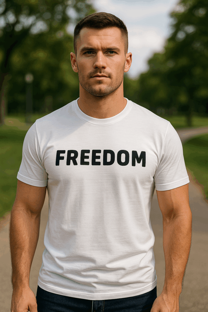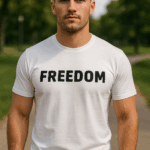 This classic t-shirt is crafted from soft, breathable 100% cotton for all-day comfort. Featuring bold “FREEDOM” lettering on the front and a minimalist American flag with “Charlie Kirk” printed on the back, it’s a simple yet powerful statement piece. Perfect for everyday wear or making your values clear wherever you go.